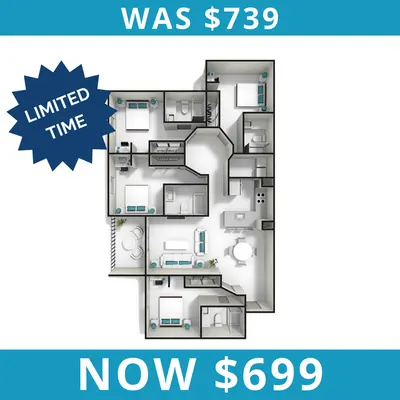 Vue Tampa Student Housing offers students everything they need to achieve a balanced lifestyle. At Vue Tampa, we offer three & four-bedroom apartments in Tampa, FL, that showcase what student living should be. Our apartments near USF are designed for comfortable living with an upscale touch. Residents enjoy sleek modern kitchens, the convenience of their own washer and dryer, individual leases and a roommate-matching program.
